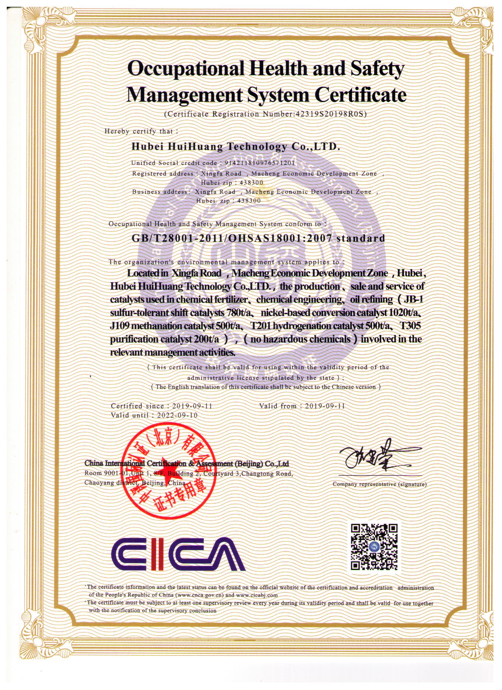 職業(yè)健康安全管理體系認證證書英文版